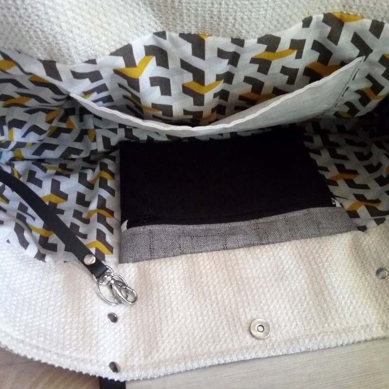 Image précédenteImage suivante lelemescreas.com BIG SAC MAMA MAXI CABAS GRAND SAC WEEK END déco pompon fermeture aimantée poche zip intérieur poche plaquée porte clefs clés noir gris beige intérieur Lélé mes Créas