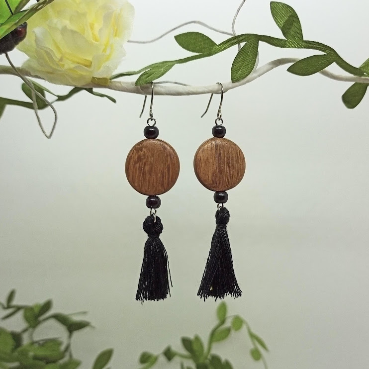 Image précédenteImage suivante lelemescreas.com BO boucles d’oreilles rond bois 20mm perles bois pompon acier inoxydable noir Lélé mes Créas