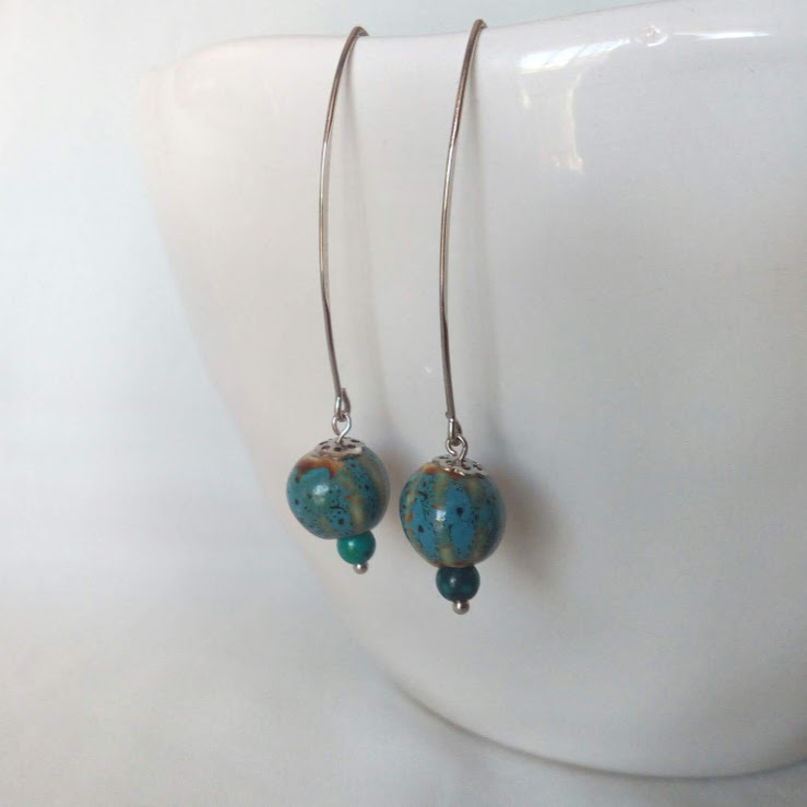 Image précédenteImage suivante lelemescreas.com BOUCLES D OREILLES PERLES EN CERAMIQUE BLEU TURQUOISE + CHRYSOCOLLE SUR ACIER INOXYDABLE Lélé mes Créas (2)