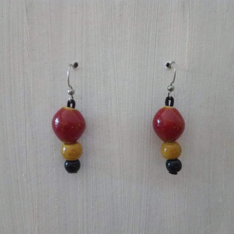 Image précédenteImage suivante lelemescreas.com BOUCLES D OREILLES PERLES EN CERAMIQUE ROUGE JAUNE NOIR SUR ACIER INOXYDABLE Lélé mes Créas