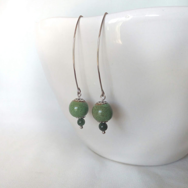 Image précédenteImage suivante lelemescreas.com BOUCLES D OREILLES PERLES EN CERAMIQUE VERT + JADE SUR ACIER INOXYDABLE Lélé mes Créas (2)