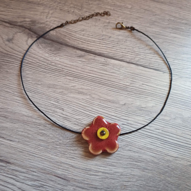 Image précédenteImage suivante lelemescreas.com COLLIER RAZ DE COU PERLES FLEUR CÉRAMIQUE SUR COTON CIRÉ by Lélé mes Créas