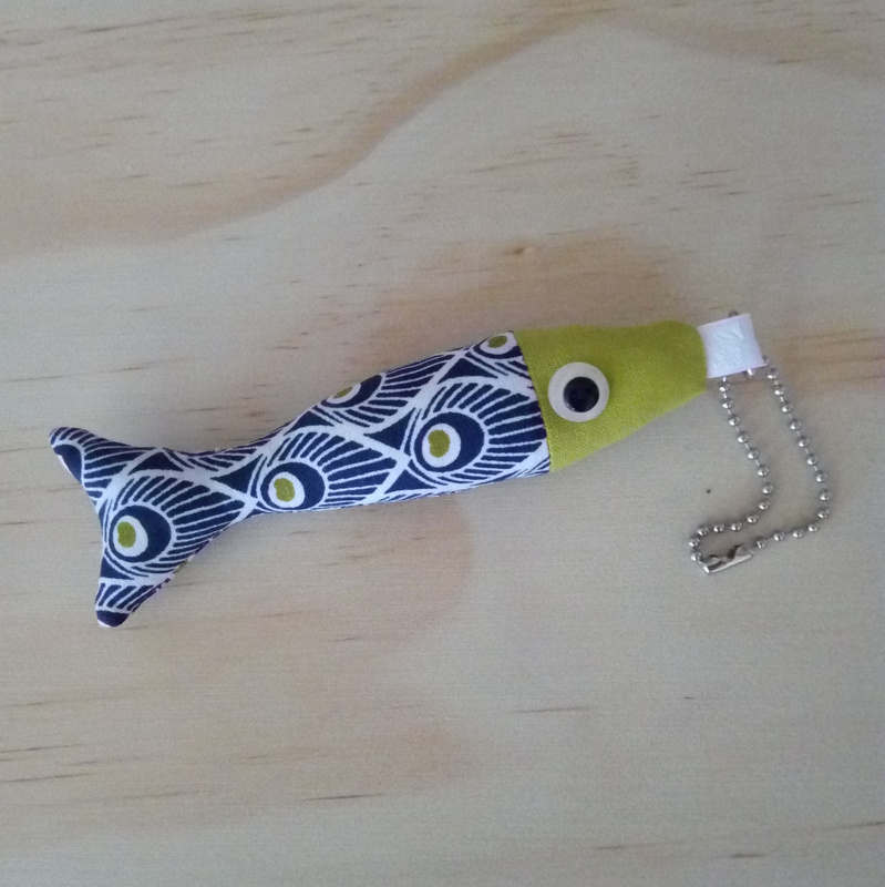 Image précédenteImage suivante lelemescreas.com PORTE CLEFS CLES POISSON SARDINE TISSU ACCROCHE RETROVISEUR 13 Lélé mes Créas